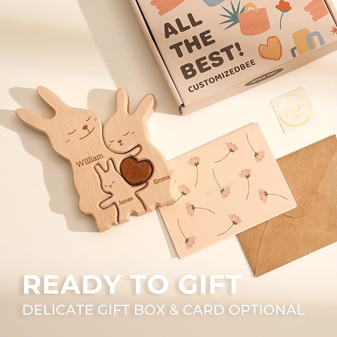 - Customized Family Puzzle: This personalized family puzzle, doubling as exquisite family decor and one of the most thoughtful Easter gifts, stands out with its intricately carved names, embodying the essence of family love and togetherness. Its specials also make it an ideal gift for various family celebrations, catering perfectly to the tastes of dads, moms, sisters, brothers, kids, and grandkids.