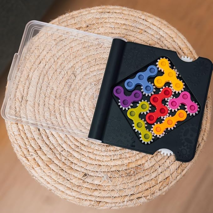 - Travel-Friendly Brain Games: Fit the pieces on the board - then twist the gears to check your solution. Close the lid and take it with you on the go!