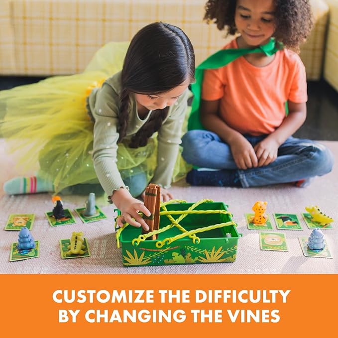 - INCLUDES: 10 animal game pieces, 10 cards, 8 customizable vines, tweezer tool, spinner, instruction guide, and game bin that makes setup, cleanup, and storage easy and stress-free
