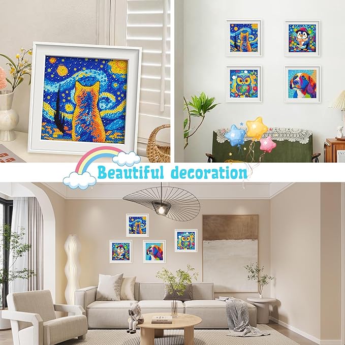 Libfx Diamond Art Kits for Kids 4 PCS Diamond Art for Girls Boys Beginners Arts and Crafts for Kids Ages 8-12 (Cartoon Cat-Penguin)