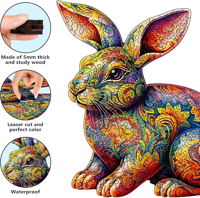 Wooden Puzzles for Adults, Unique Puzzles for Adults, Irregular Animal Shaped Wooden Jigsaw Puzzles, Creative Birthday Gift, 11.8 x 9.1 inch, Rabbit