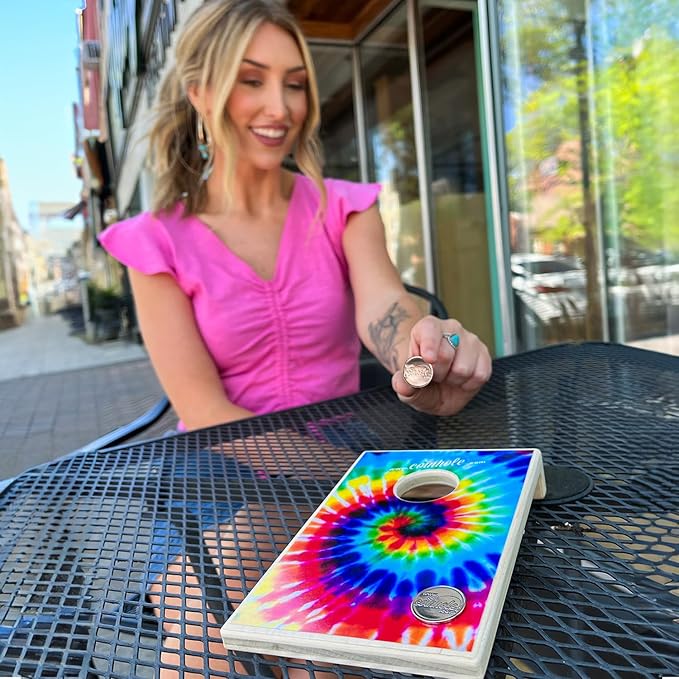 - Official Coinhole Game Design: This tie dye game board are perfect for the home, office, tailgating, dorms, travel, gift games and more.