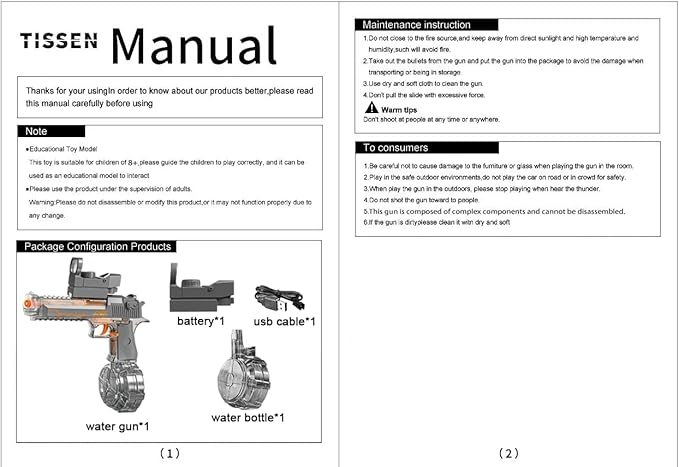 - 【Innovative Battery Inside Design】Battery inside, easy to use! The water gun is powered by a rechargeable battery, which is placed inside the accessory and can be used simply by installing the accessory, without the need for difficulty in connecting the battery cable. It can be played continuously for 3 hours after fully charged.Do not soak the water gun battery components for a long time to prevent damage.