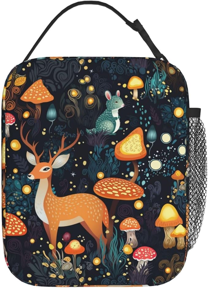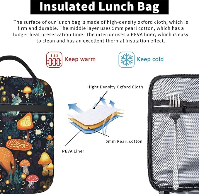 Fantasy Forest Mushrooms Grass Reusable Lunch Box Food Bag Insulated Lunch Bag for Teenage Boys Girls School Beach