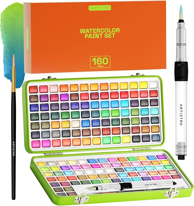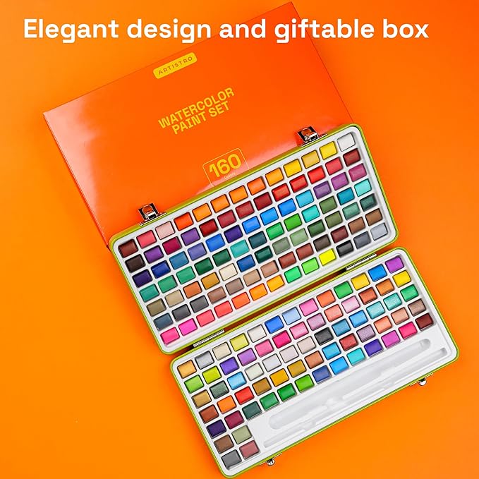 ARTISTRO Watercolor Paint Set 160 Colors - Vivid, Metallic & Neon, Portable Travel Set for Kids & Adults
