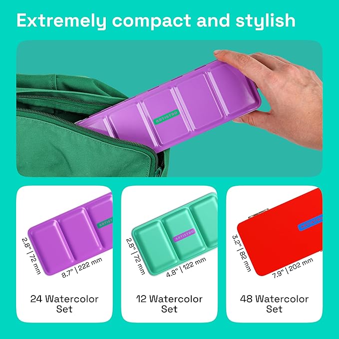 ARTISTRO Watercolor Paint Set 24 Colors, Travel Watercolor Set in Portable Box, Mini Water Colors Paint for Artists, Beginners, Amateur Hobbyists