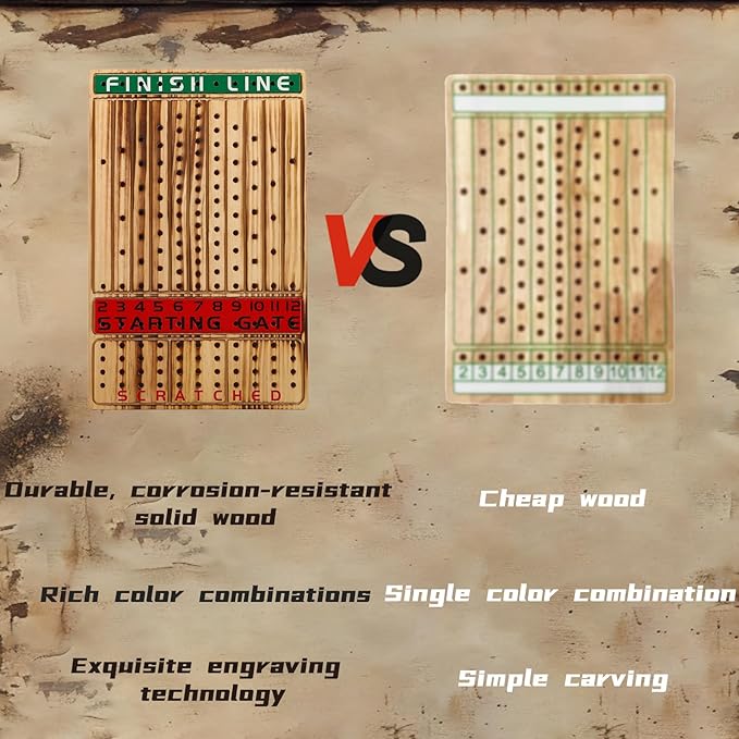 - 【Deluxe Horse Racing Board】Our horse racing board is crafted from high-quality solid wood, ensuring durability. The dimensions of the equestrian board are 15.7*10 inches. Each set includes 11 metal model horses (4 gold, 4 rose gold, 3 silver-gray), a metal horse storage bag, 100 poker chips,2 sets of dice (4 in total), 2 boxes of cards, and a detailed instruction manual.