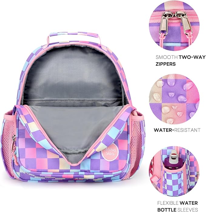 mibasies Toddler Backpack for Girls 2-4: Preschool Kindergarten Backpack - Cute Kids Backpacks for Girls - Checkerboard