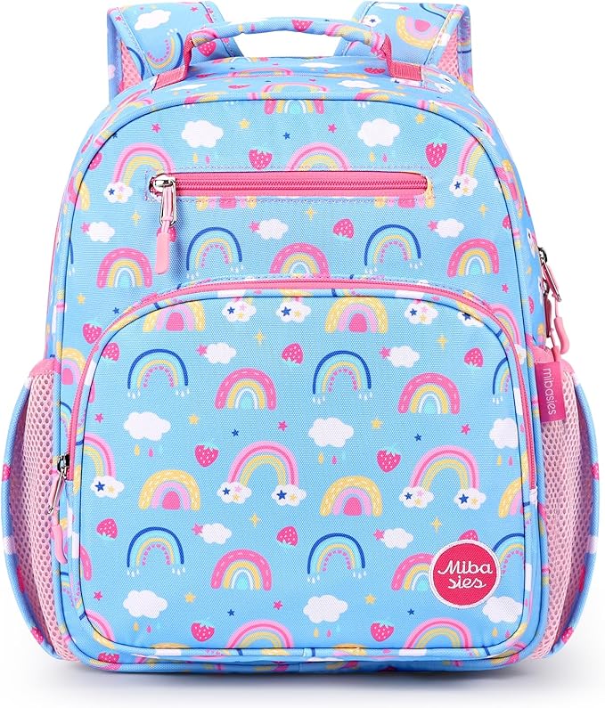 mibasies Kids Backpack for Girls: Girls Backpack 5-8 - Kindergarten Elementary School Bookbag for Girl - Rainbow Blue