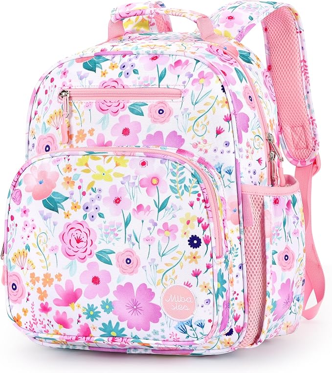 mibasies Kids Backpack for Girls: Girls Backpack 5-8 - Kindergarten Elementary School Bookbag for Girl - Flower Pink