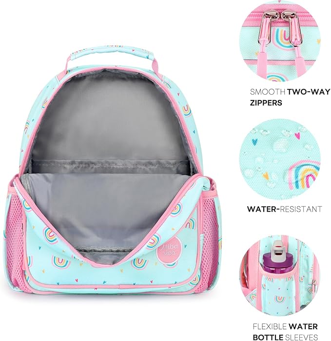 mibasies Toddler Backpack for Girls 2-4: Preschool Kindergarten Backpack - Cute Kids Backpacks for Girls - Rainbow Mint green
