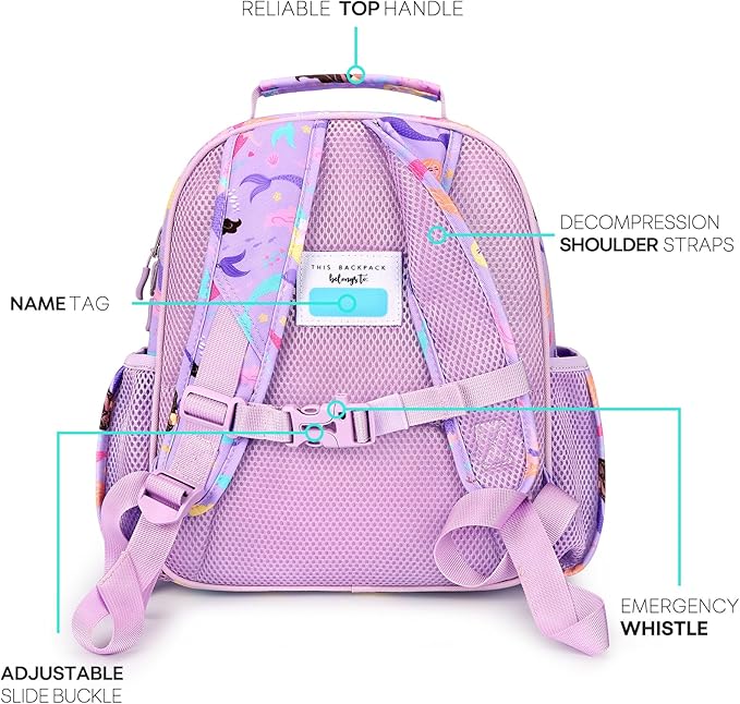 - Surprise design: The toddler girl backpack includes a name tag for personalization, a breathable back panel to prevent sweating, and adjustable shoulder straps to fit a variety of body sizes. The unique whistle design on the chest buckle serves as both a toy and an emergency alarm.