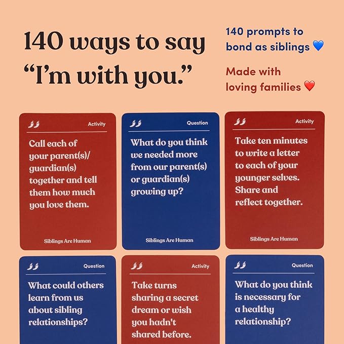 Siblings are Human | 140 Conversation Cards to Help Deepen Sibling Relationships | Card Game for Bonding & Communication | Therapy for Adults