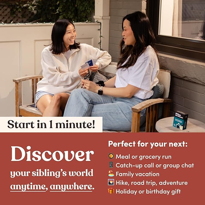 - THOUGHT-PROVOKING CONVERSATIONS: Engage in 100 Question Cards crafted to ignite profound discussions, fostering empathy, understanding, and vulnerability as you explore topics that deepen your connection and strengthen your bond, creating opportunities for heartfelt conversations that enhance your sibling relationship on emotional and relational levels