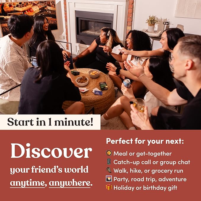 - THOUGHTFUL DIALOGUE: Engage in 100 Question Cards tailored to spark profound conversations, prompting empathy, understanding, and vulnerability as you delve into topics that strengthen your bond, cultivating deeper connections and fostering emotional intimacy among friends