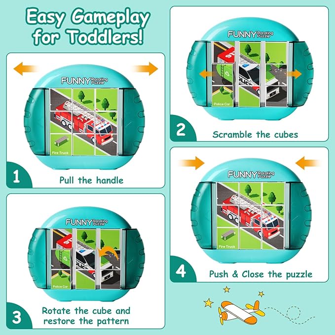 - A HANDY TOY FOR OUTINGS - Whether in the car or at a restaurant, our compact Rotating Puzzles can be carried along and it keeps children quiet and occupied. Moreover, there is no risk of missing pieces after playing with this all-in-one design puzzle!