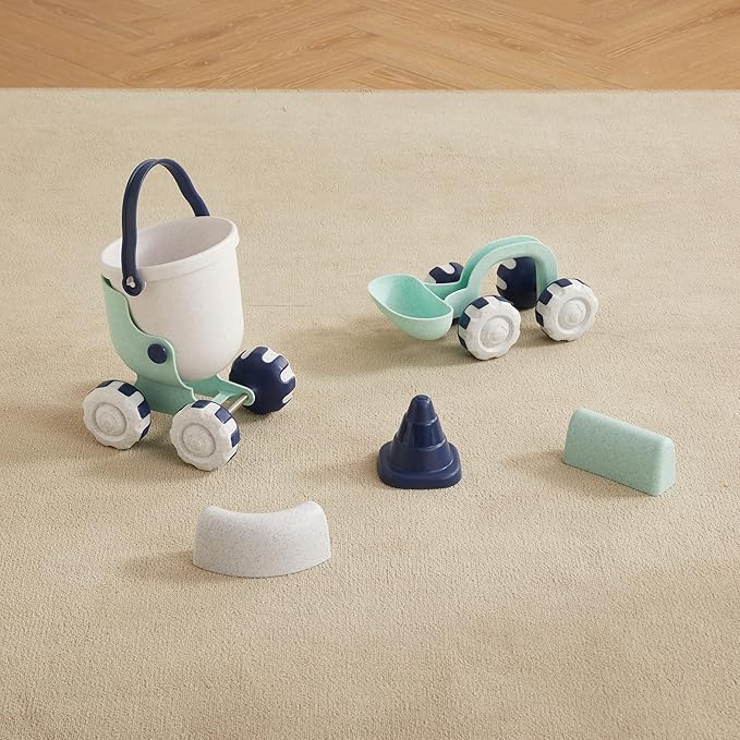 - 【MULTI FUNCTIONAL DESIGN】The Asweets sand toy set comprises five components: a beach toy car equipped with a shovel, a beach toy car with a bucket, a straight sandcastle mold, a curved sandcastle mold, and a conical sandcastle mold. The set is conveniently portable, and the three molds can be neatly stored inside the bucket