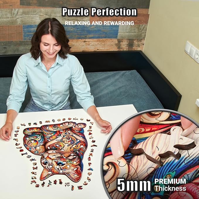 - 【 SOLID WOOD FOR LONG-LASTING USE 】 Unlike regular wood puzzles for adults, our cat wooden puzzle made from 5mm wood — nearly twice as thick as standard wooden jigsaw puzzles. Precise laser cut puzzle pieces create a high-end puzzle built to last