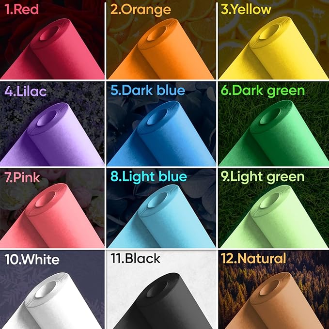 - Great for Crafts, Gift Wrapping, or School: Our colored 24-inch art paper roll is great for a variety of applications, including krafting, gift wrapping, and educational activities in schools. Use colored paper to create handmade cards, scrapbooking, decorations, and art projects. With our rich 12 color palette, you can complete any themed project