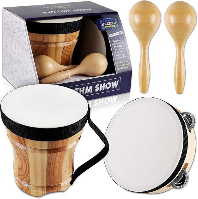 LOOIKOOS Toddler Musical Instruments for Kids Ages 5-9 Montessori Toys for Toddlers 3-5 Wooden Percussion Instruments Drum set for Kids Gifts