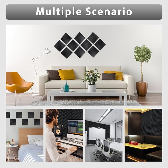 - [Wide Range of Applications] The sound proof foam panels for wall suitable for recording studios, personal studios, offices, home rooms, live streaming rooms, private theaters, or any environment requiring sound quality and noise absorption. It also suitable for DIY sound-absorption box.