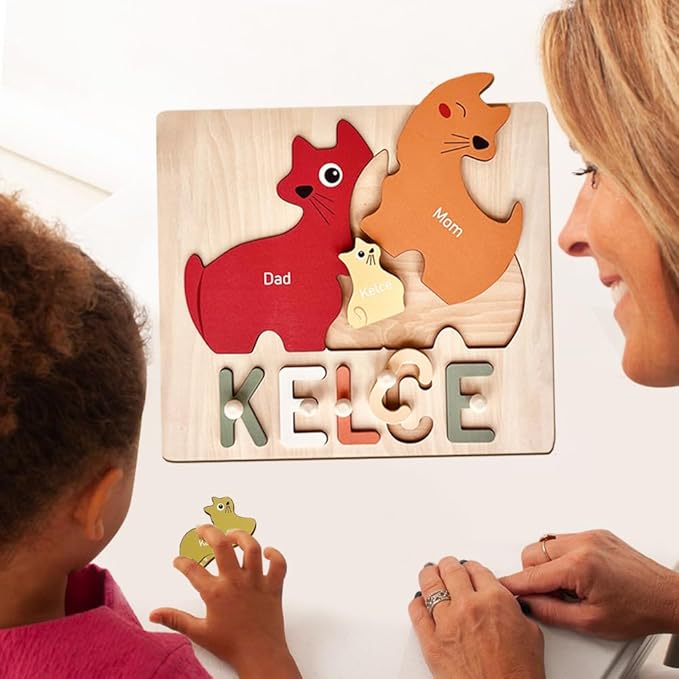 Personalized Baby Name Puzzle | Custom Wooden Baby Toy for Toddlers 1-3 | Montessori Learning Toys for Boys & Girls | Perfect Kids Gift for First Birthdays & Christmas (Cats)