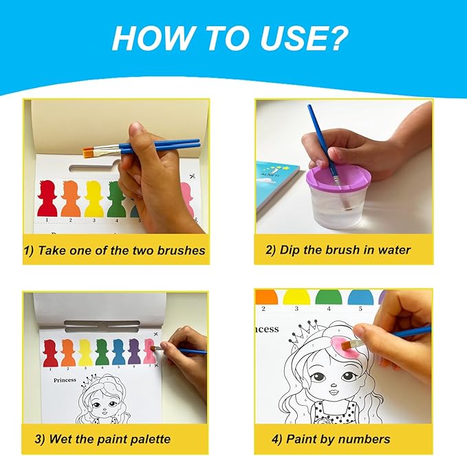 - Easy to Use - children will love our simple water paint books for kids that paint by numbers. Spark children's artistic and creativity with small paint with water for toddlers