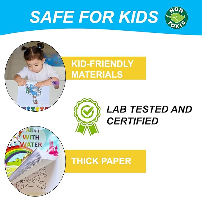 - Magic Paint Set for Kids - our water coloring books for kids have 20 painting pages, two brushes, thick art paper. Your kid deserves best painting books for kids ages 3-5, 6-8