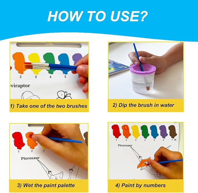 - Easy to Use - little girl and boy who love dinosaurs will enjoy such paint by number art stuff supply as simple just add paint with water for toddler; spark children's artistic and creativity with water paint book