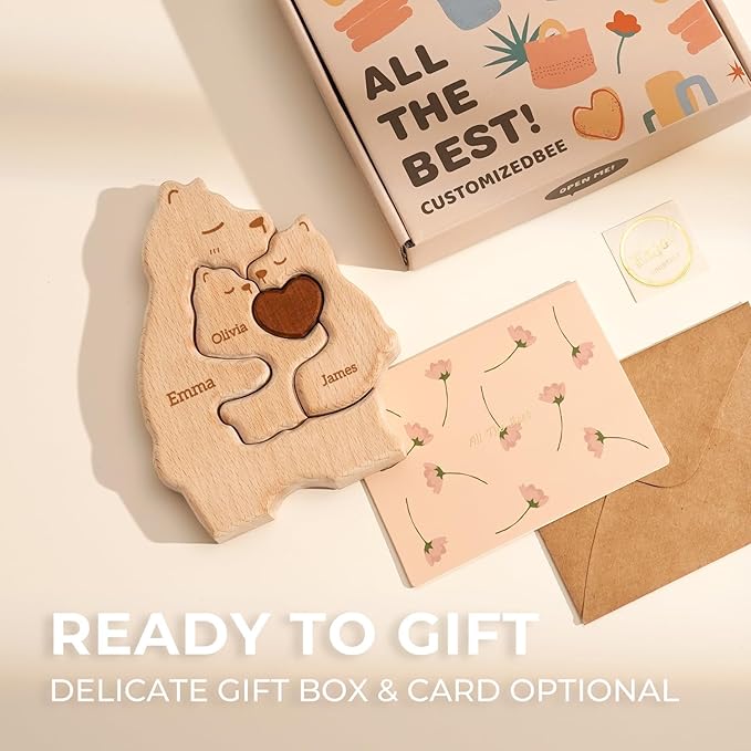 Wooden Mommy Bears Family Puzzle, Personalized Puzzles with 2–5 Names, Father's Day Personalized Gifts for Dad Mom Kids Teen Boys Girls Grandma, Toddler Men Birthday Mother's Day Decorations