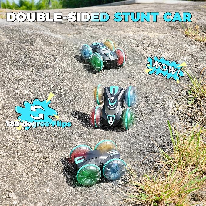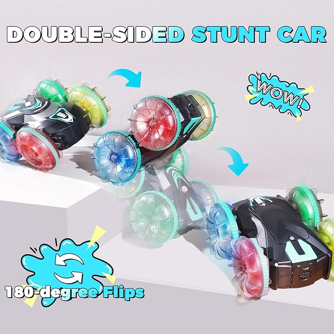 - 【Ideal Non-screen Gifts】This RC stunt car is a ideal choice for outdoor toys. Take it to the park, backyard, beach, or pool for non-stop excitement in any environment. Nonstop fun for ages 8 9 10 11 12 13, perfect for birthday or Christmas gifts.