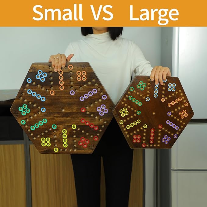 - 【Classic Thicken Board】 Fasttrack Game Board Size is 14.8" x 13" x 0.8".And the material is selected from high-quality wood with double-sided painted design, suitable for 4 or 6 players.It Inlcudes 30 colored marbles (with additional marbles), 6 dices, 1 velvet drawstring pouch for marbles and dice,detailed instruction manual and 1 gift box