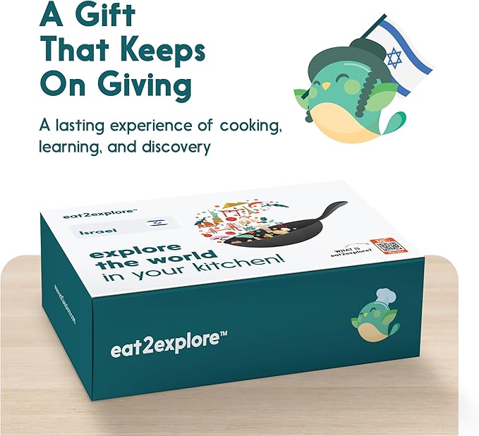 eat2explore Kids Interactive & Educational Real Cooking Set for Families | Includes 3 Local Recipe Cards with Key Ingredients, Cooking Tools, Fun Kids Explorer Guide | Explore Israel Kit