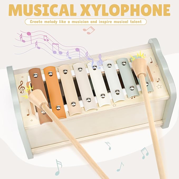 - Montessori-Inspired Learning for Toddlers - Nurture your child's early development with this thoughtfully designed toy set. The mole-tapping game strengthens motor skills and reflexes, while the magnetic fishing game sharpens hand-eye coordination. The xylophone introduces the joy of music, and the gear-spinning activity encourages problem-solving and logical thinking. Perfect for curious babies aged 12 months and up!