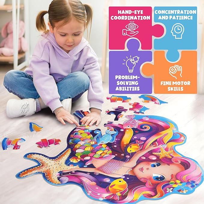 - EDUCATIONAL FUN: Our mermaid puzzle offers a fun challenge for kids ages 3-8 and also a fun interactive activity for adult and children; encourages concentration, fine motor skills and enhances problem-solving abilities and creativity