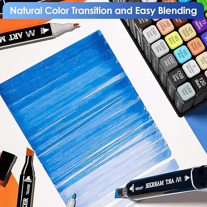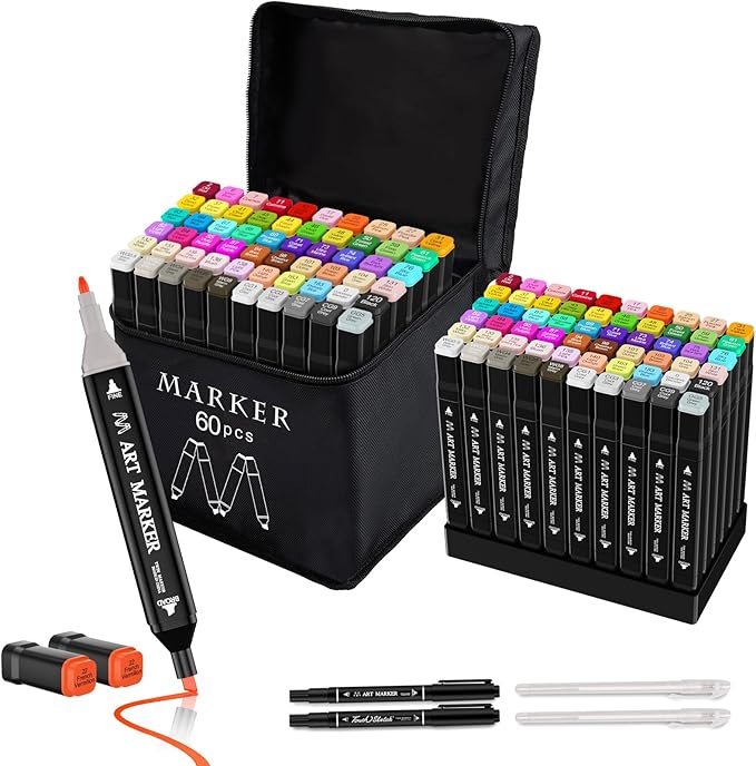 - 【60 Vibrant Colors】60 colors unique art marker pens bring your art to life, multiple choices, standard colors on the pen, new color system, no deviation, natural transition, natural color overlap, outstanding effect, bright color, easy to blend. Whether it's a coloring book or a masterpiece in the making, your artwork is sure to shine with these brush markers. Great as art markers, sketch markers, permanent markers, alcohol based markers, paint markers.