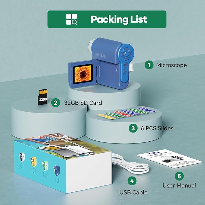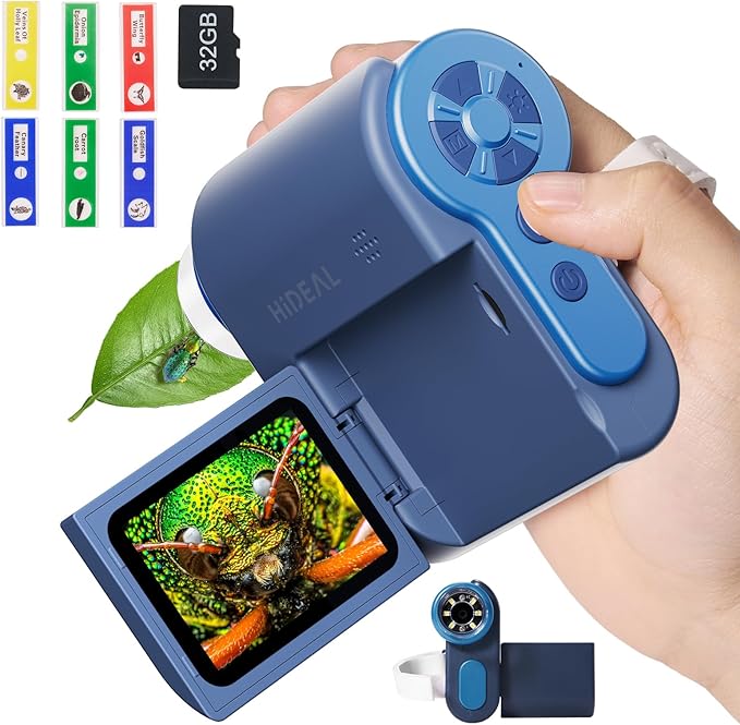 - 3-in-1 Kids Microscope: Hideal HP20 functions as a DV camera, handheld microscope, and pocket telescope - perfect for young explorers. Capture photos & videos, explore the microscopic world, or observe distant landscapes. Compact, easy to use, and educational, this 3-in-1 microscope makes science exciting for kids