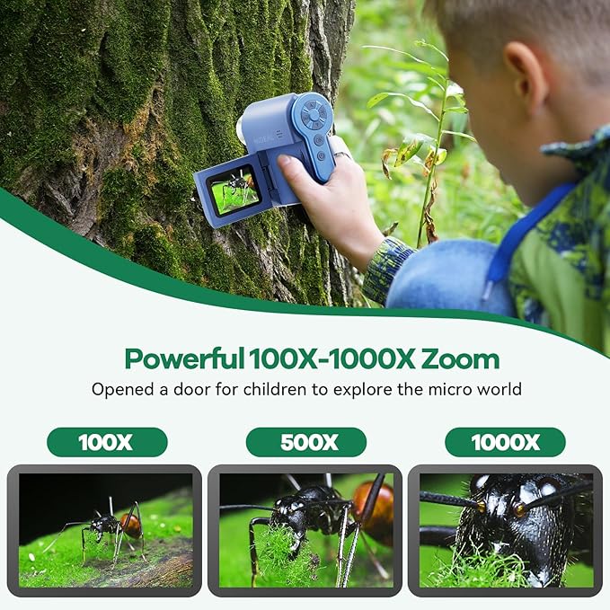 - Portable & Rechargeable: Compact and easy to carry, this handheld microscope is perfect for on-the-go exploration. Rechargeable with a 3-hour battery life, it's ideal for backyard, classroom, or field trip adventures, letting kids discover science anytime, anywhere