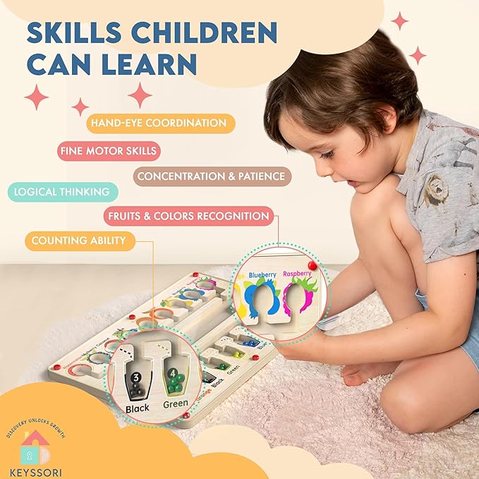 - ๐จใ Learn Fruits, Colors and Numbers Through Playใ: Featuring 55 colorful magnetic beads, this engaging maze combines fun and foundational learning in math, counting, and color recognition.