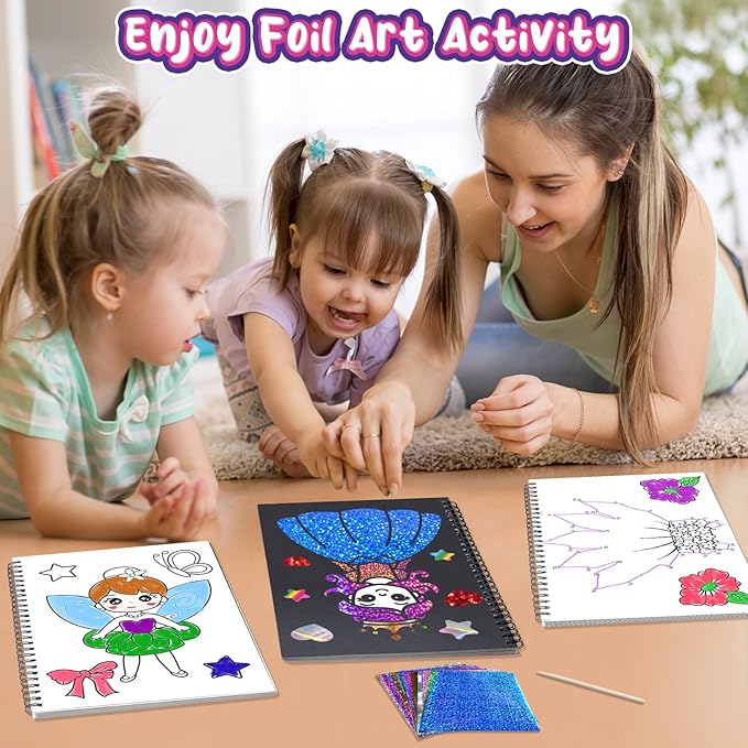 - Foil Art Craft Activity Kits: parents will love this no-mess no glue creative foil dress up activity for kids,it increase hands-on ability and creativity and keeps kids engaged and entertained at home or on the travel, during play date, art classes in the classroom without worrying about any mess.