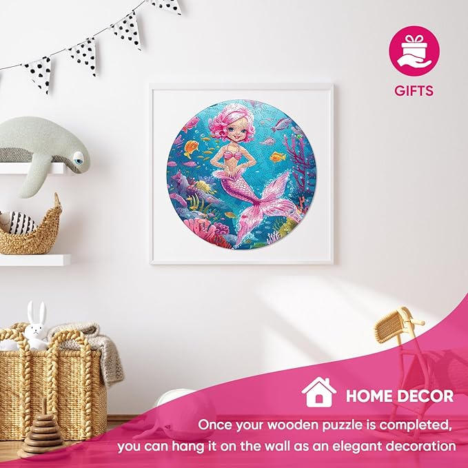 - Mermaid Wood Puzzle: Each puzzle piece is cutting art, the different irregulars wooden puzzle shape make your puzzling time more enjoyable.It will take 4 hours to finished, a great time to work with your or partner