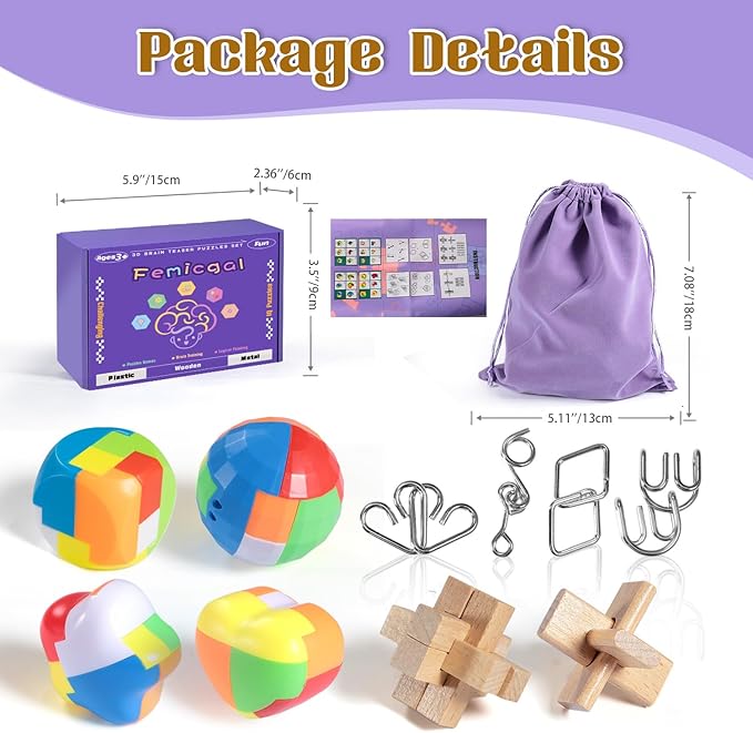 - Reliable & Safe: Crafted from fine wood, sturdy metal, and robust plastic, our brain teaser puzzles are smooth and maintain their shape without bending or breaking. Designed with no sharp edges, they are safe for both you and your children. These brain puzzles are portable and suitable for various settings, including school, office, parties, and family gatherings.