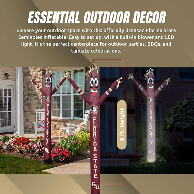 - IMPRESSIVE AIR DANCER TUBE GUY YARD DISPLAY: Our Team Pride Florida State Seminoles Inflatable Crazy Sports Fan stands tall at 8 feet, making it a commanding presence in your outdoor decor. Perfect for game days, tailgates, and outdoor gatherings, it's the ultimate expression of team spirit.