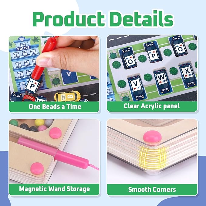 - 【Material】 The magnetic maze game board is made of high quality natural wood. The edges of the board have been strictly polished and are smooth and flat, which will not cause any harm to children's little hands.The smooth and transparent board firmly fixes the small toy beads inside the board, These magnetic balls won't fall apart.
