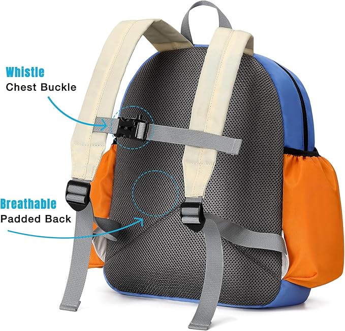 - 【COMFORT&WHISTLE FUNNY】Designed with padded shoulder straps and a ventilated back design, this toddler school backpack provides breathability and decompression. The chest buckle is made of a unique safety whistle design, which can not only be used as a child's daily toy but also blow for help in time of danger.