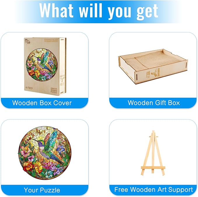 - Wooden Jigsaw Puzzles - The package including 1 x unique shape wooden jigsaw puzzle for adults, 1 x wooden gift box, 1 x wooden support. 3 sizes of puzzles from easy to difficult, working on a puzzle with friends or family can promote teamwork and communication, and can provide a fun and relaxing way to spend time together.