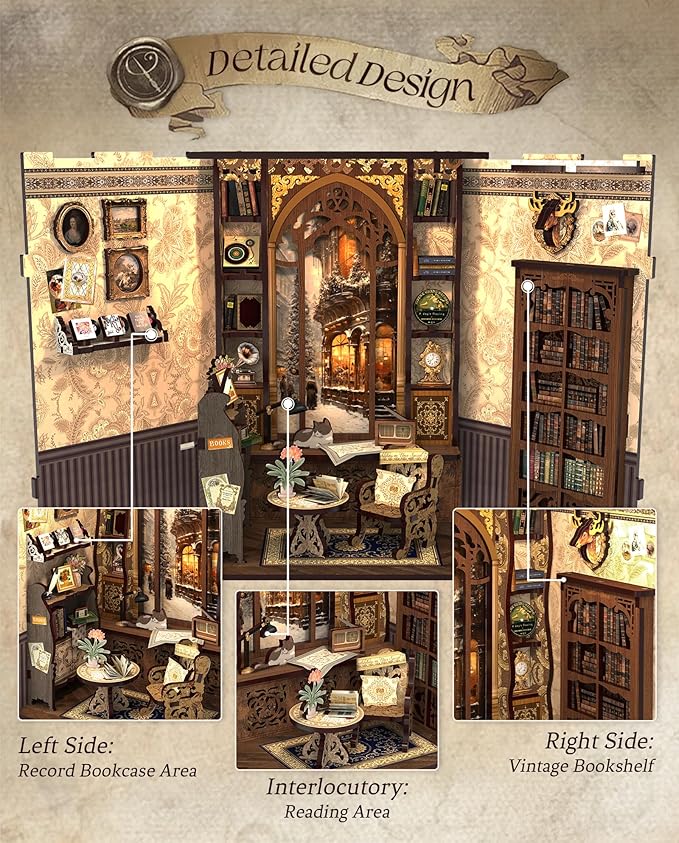 - 【Warm Tips】The book nook kit has been carefully checked before delivery to ensure that the accessories are complete and not missing. If you have any questions during assembly, please feel free to let us know, we will solve any problems as soon as possible. Please note: You need to prepare the silicone liquid glue and two batteries (Type AAA).