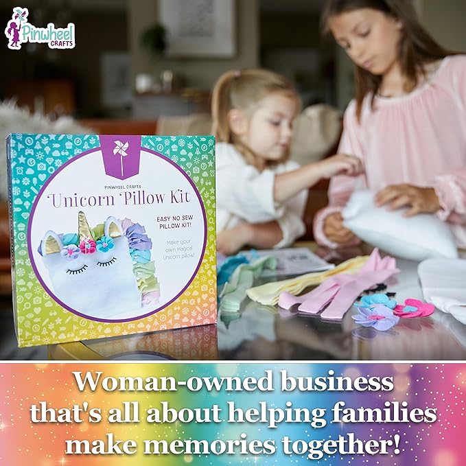 Pinwheel Crafts Unicorn Pillow Kit - DIY Arts and Crafts for Kids Ages 6 7 8-12+ Years, No Sewing Kit for Kids, Unicorn Pink Pillow Craft Kits for Birthday, Christmas Gifts for Girls