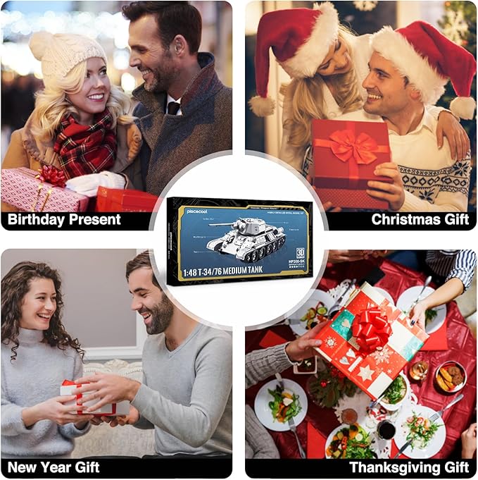 Piececool 3D Puzzles for Adults, Soviet T34 Tank Model Building Kits (1:48 Scale), Metal Kit to Build, Challenging Brain Teaser Puzzle DIY Arts and Craft Kits, Best Gifts