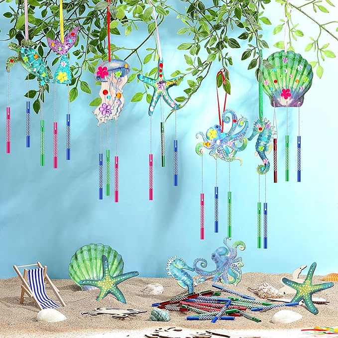 - Gift Choice: This marine creature themed wooden craft set is suitable for summer DIY activities and bulk art projects. They are suitable for summer parties, birthdays, Christmas, and various special events. These ocean wooden wind chimes can be beautifully displayed on doors, windows, gardens, schools, and other decorative spaces.